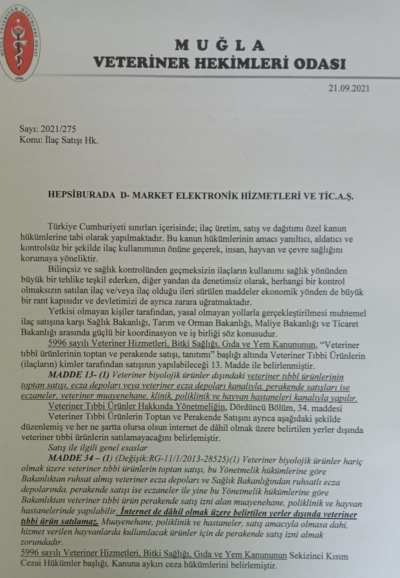 İnternetten yapılan ilaç satıslari hakkinda Hepsiburada D-Market Firmasına yaptığımız satiş iptal başvurusu…